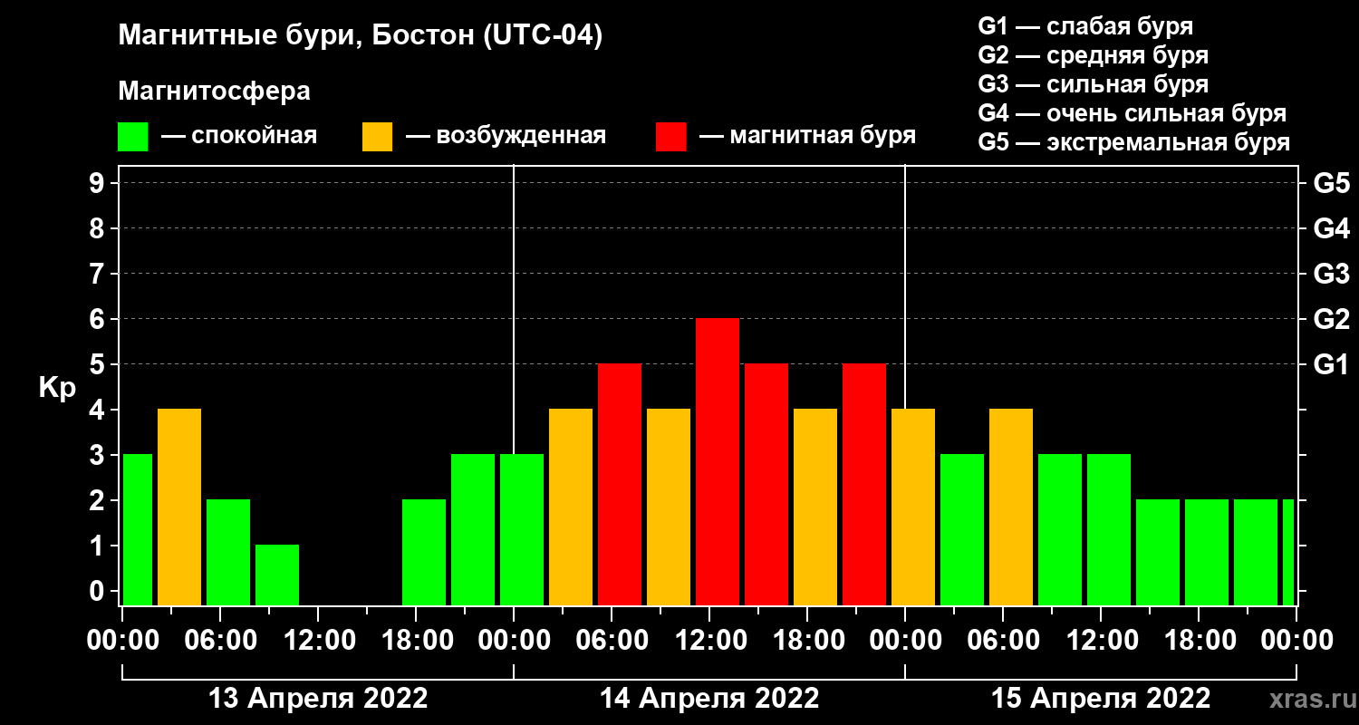 Магнитные бури в Бостоне 15 апреля 2022 года