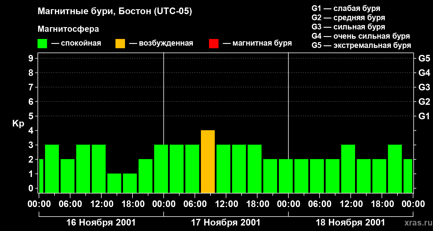 Магнитные бури в Бостоне 18 ноября 2001 года