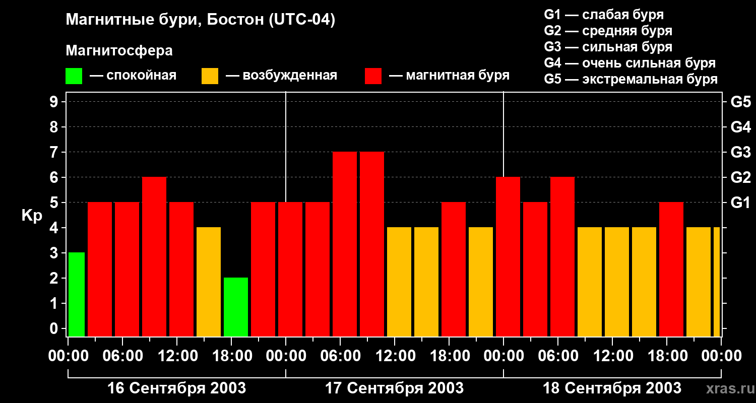 Магнитные бури в Бостоне в сентябре 2003 года