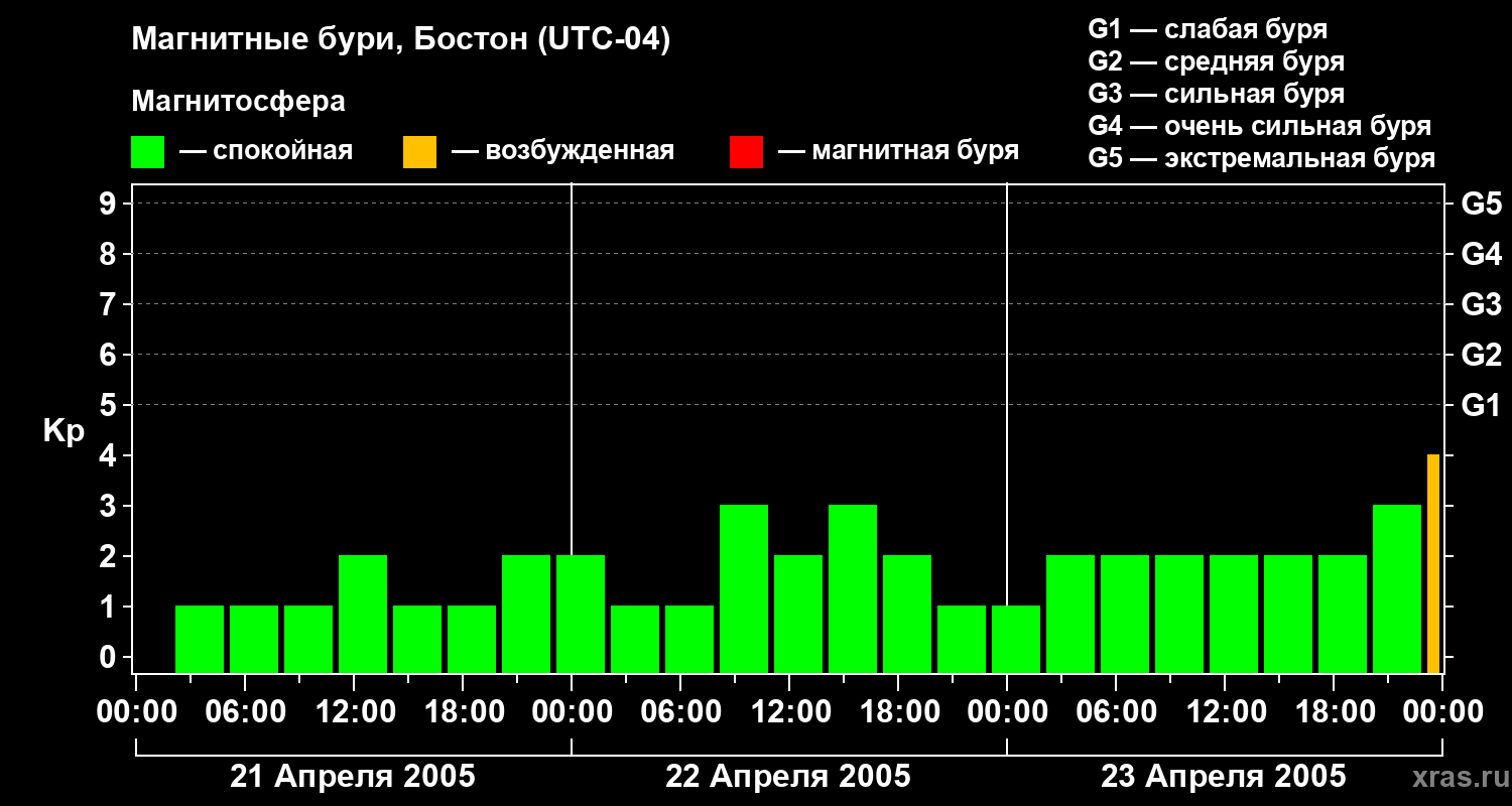 Магнитные бури в Бостоне 23 апреля 2005 года