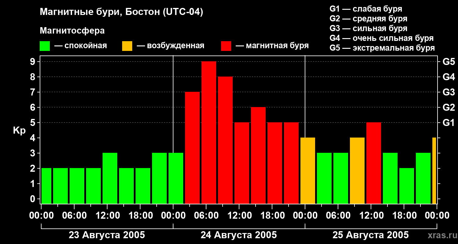 Магнитные бури в Бостоне — 25 августа 2005 года