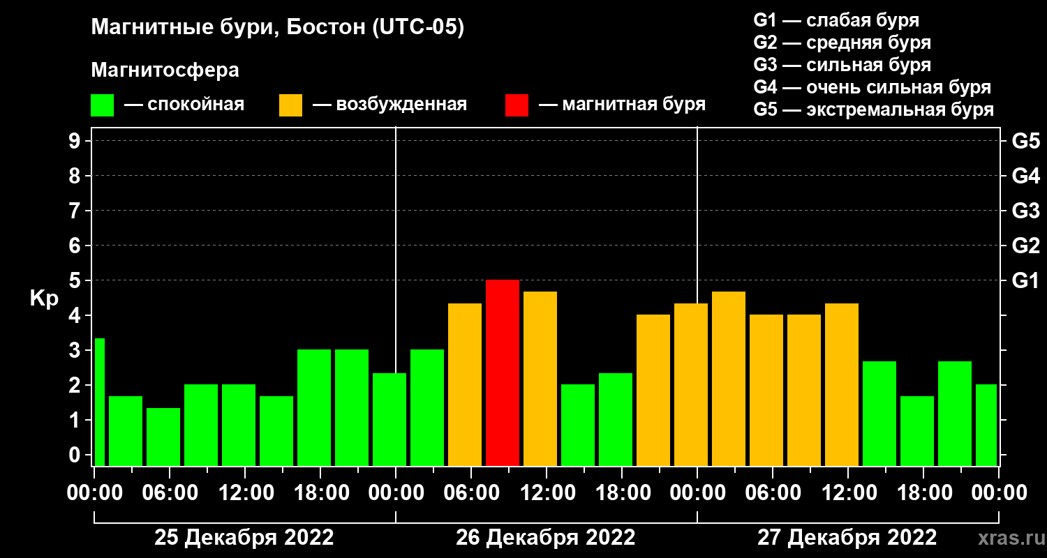 Магнитные бури в Бостоне 27 декабря 2022 года