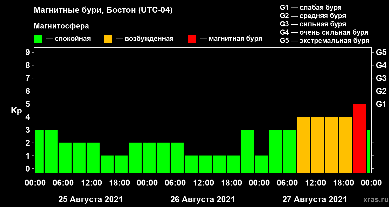 Магнитные бури в Бостоне 27 августа 2021 года