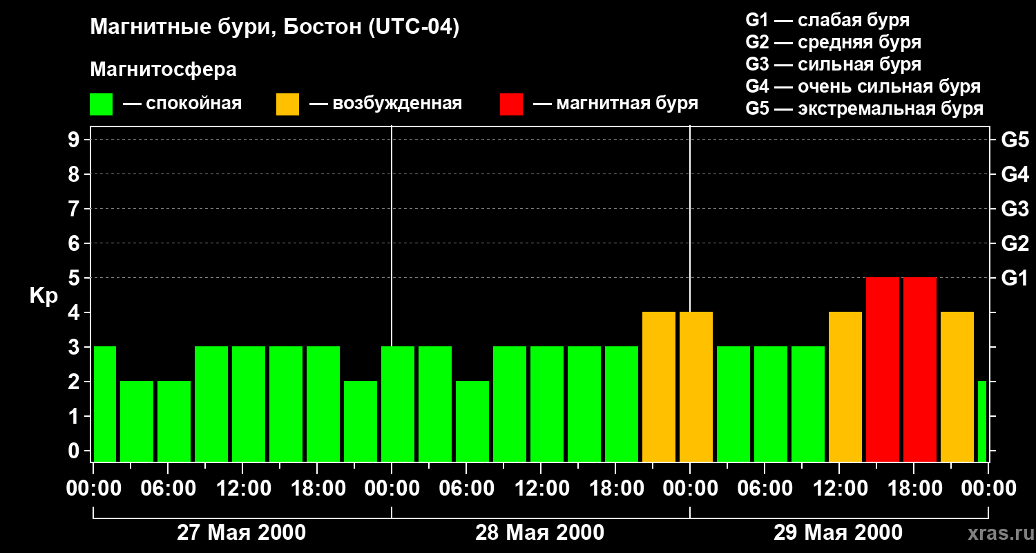 Магнитные бури в Бостоне 29 мая 2000 года