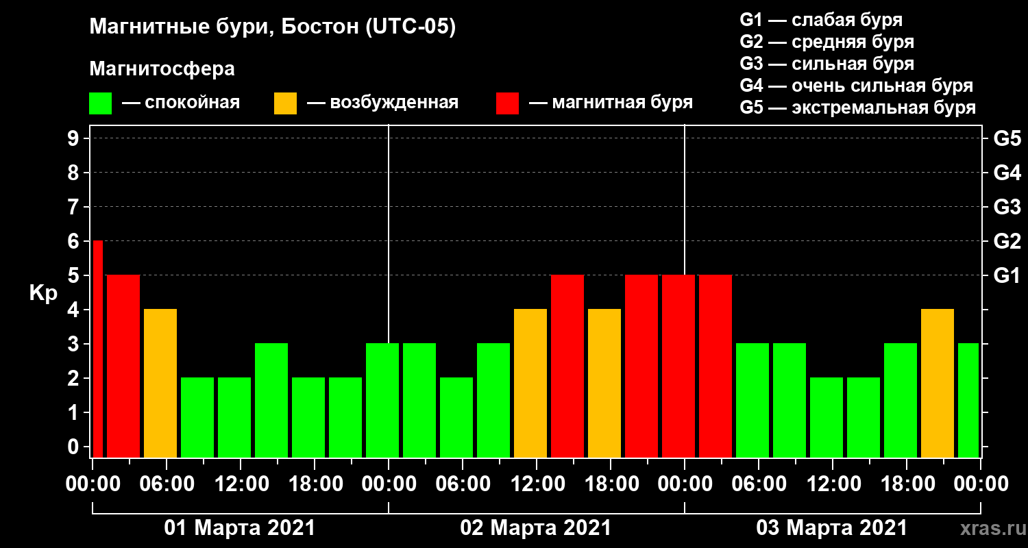 Магнитные бури в Бостоне 3 марта 2021 года
