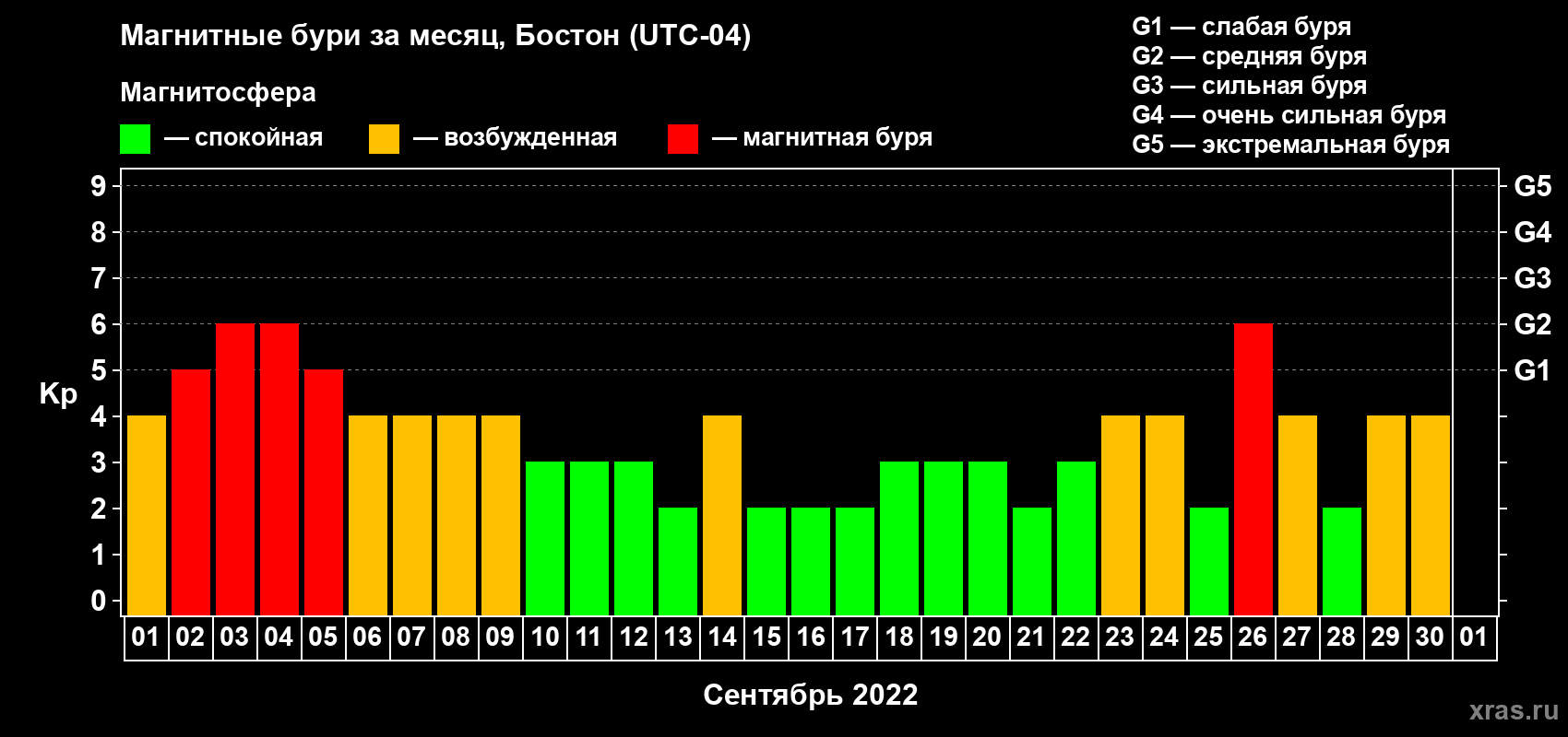 Магнитные бури в Бостоне 30 сентября 2022 года