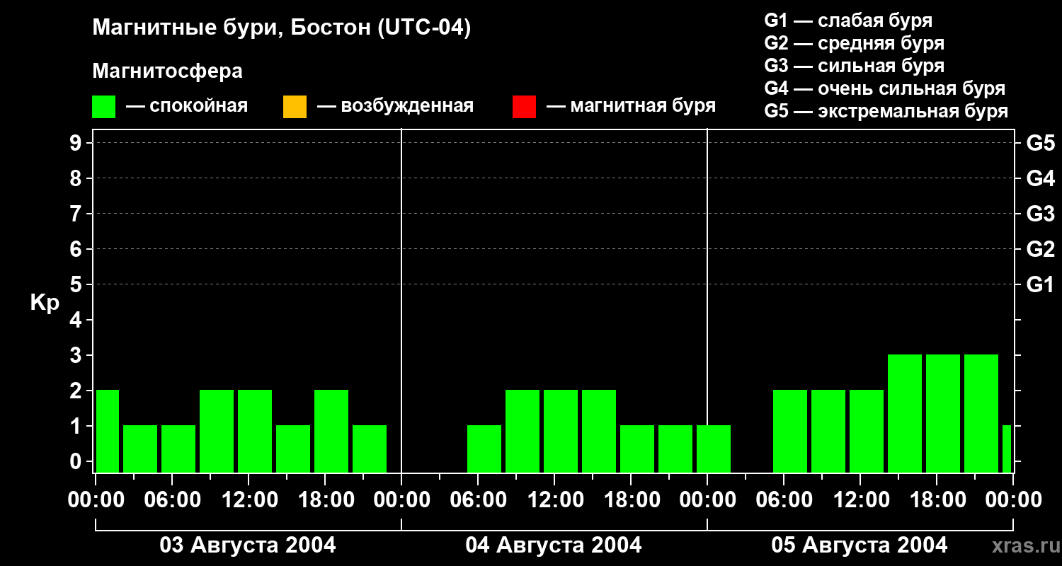 Магнитные бури в Бостоне 5 августа 2004 года