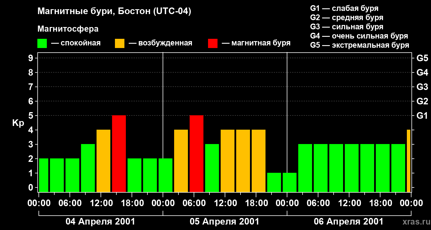 Магнитные бури в Бостоне 6 апреля 2001 года