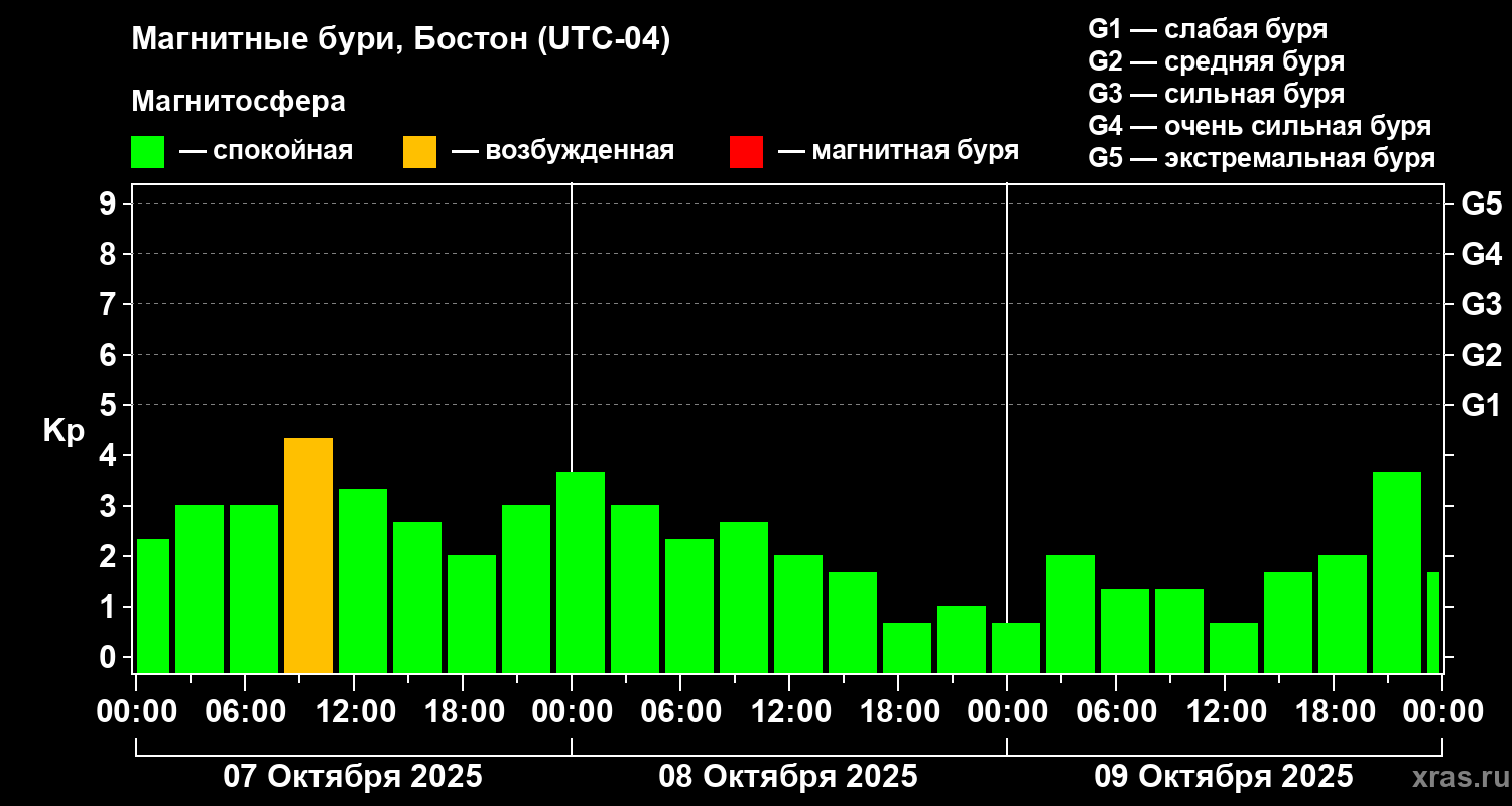 Магнитные бури в Бостоне — 9 октября 2025 года