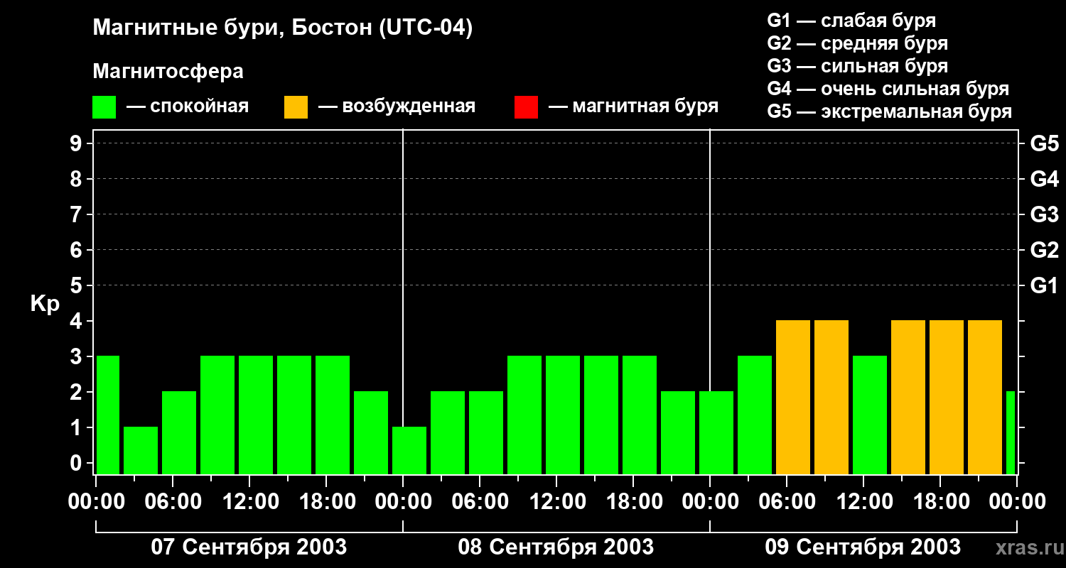 Магнитные бури в Бостоне — 9 сентября 2003 года