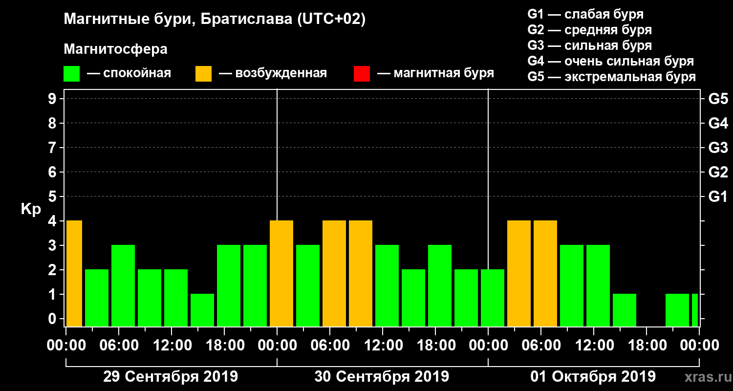 Магнитные бури в Братиславе — 1 октября 2019 года