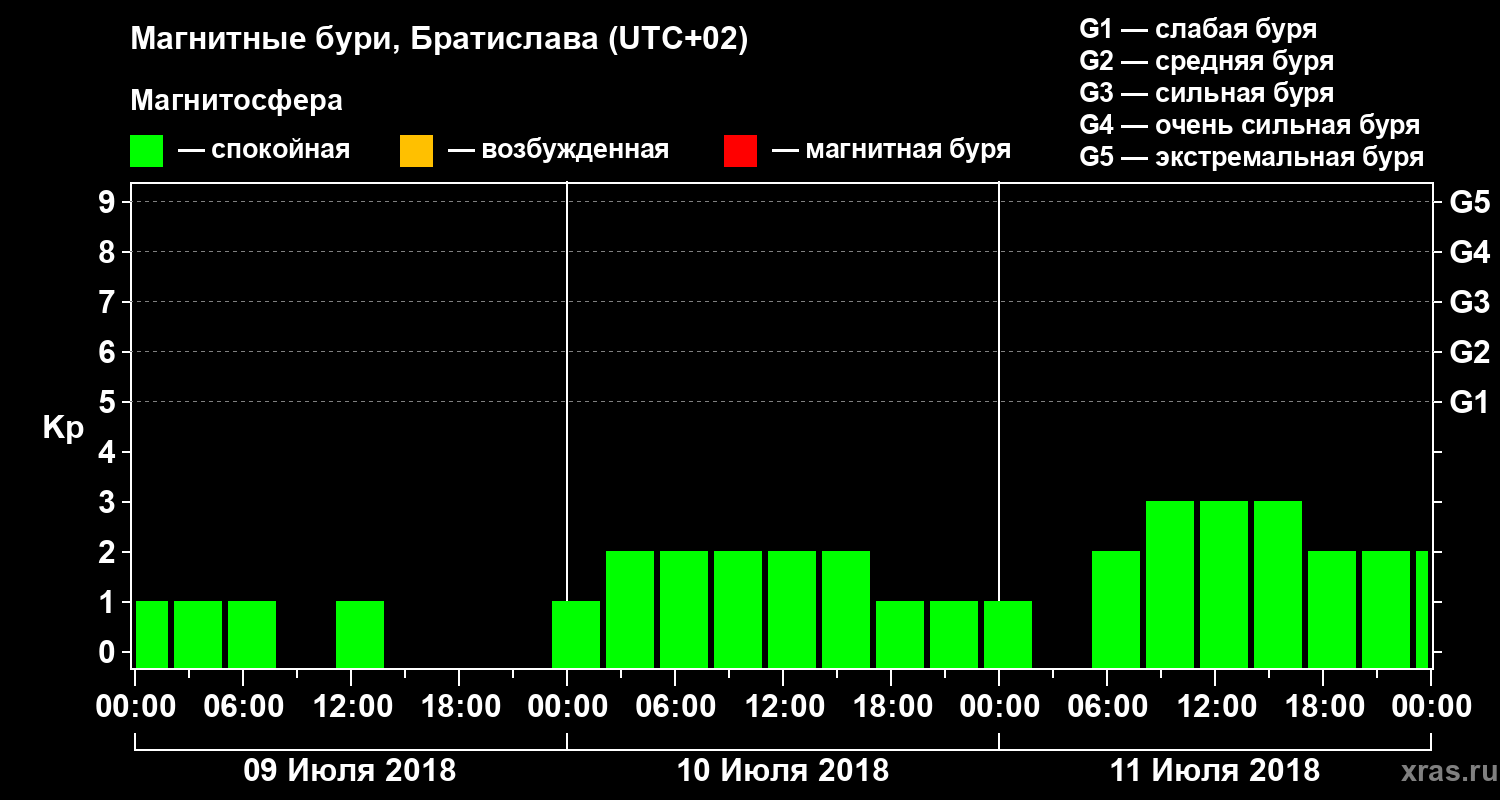 Магнитные бури в Братиславе — 11 июля 2018 года