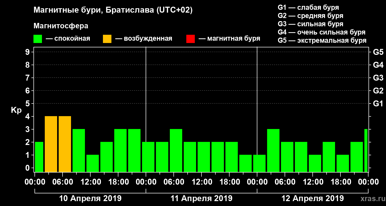 Магнитные бури в Братиславе — 12 апреля 2019 года