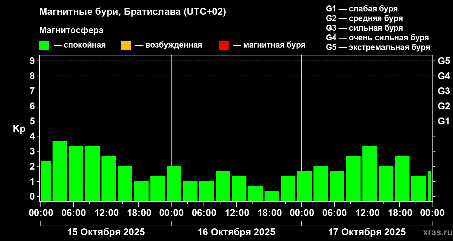 Магнитные бури в Братиславе — 17 октября 2025 года