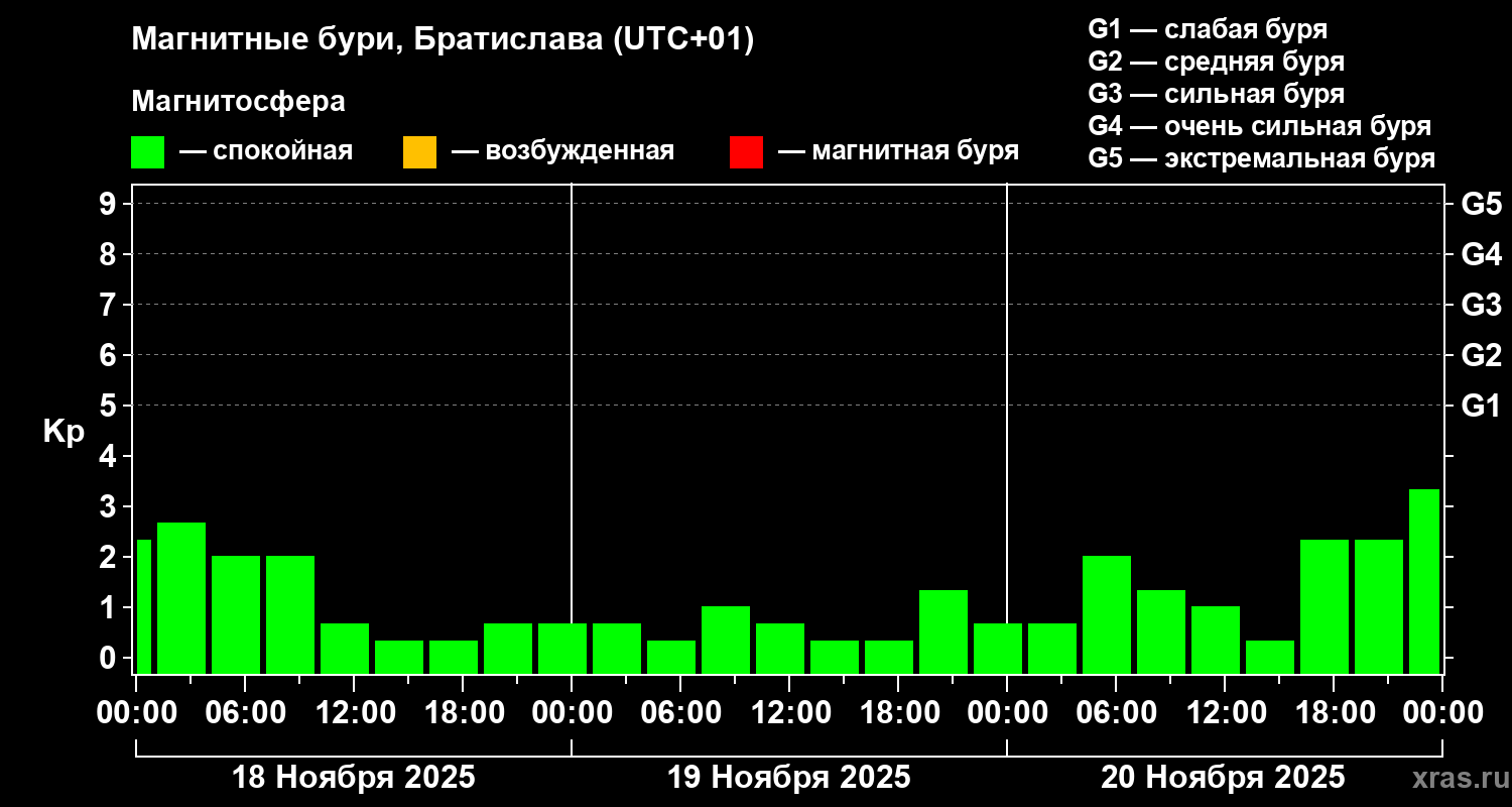 Магнитные бури в Братиславе 20 ноября 2025 года