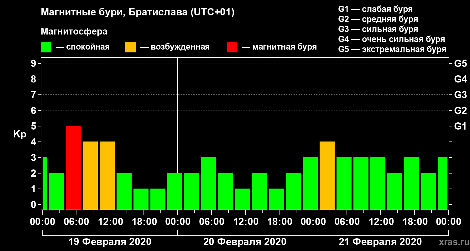 Магнитные бури в Братиславе — 21 февраля 2020 года