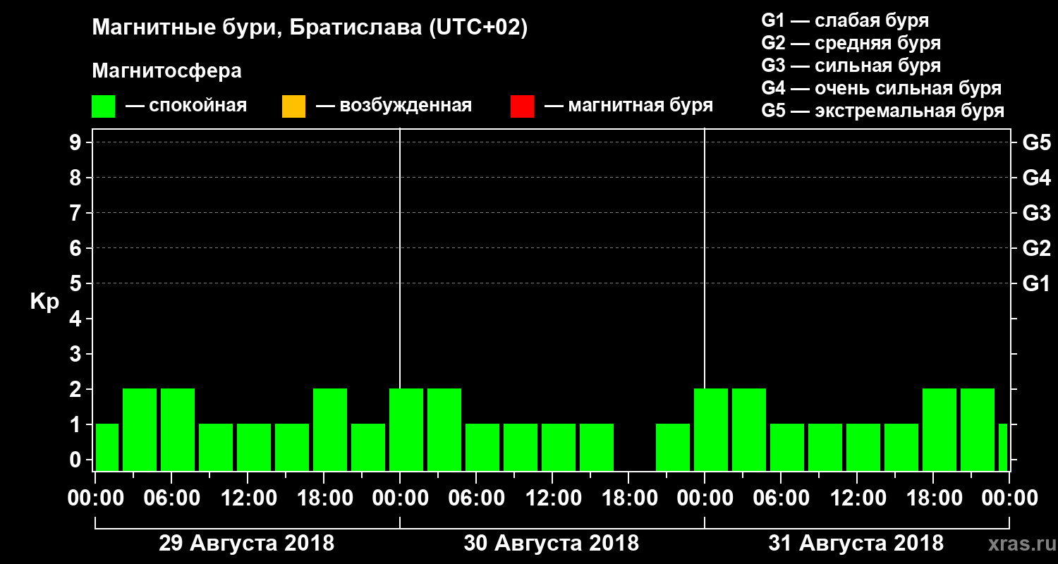 Магнитные бури в Братиславе — 31 августа 2018 года