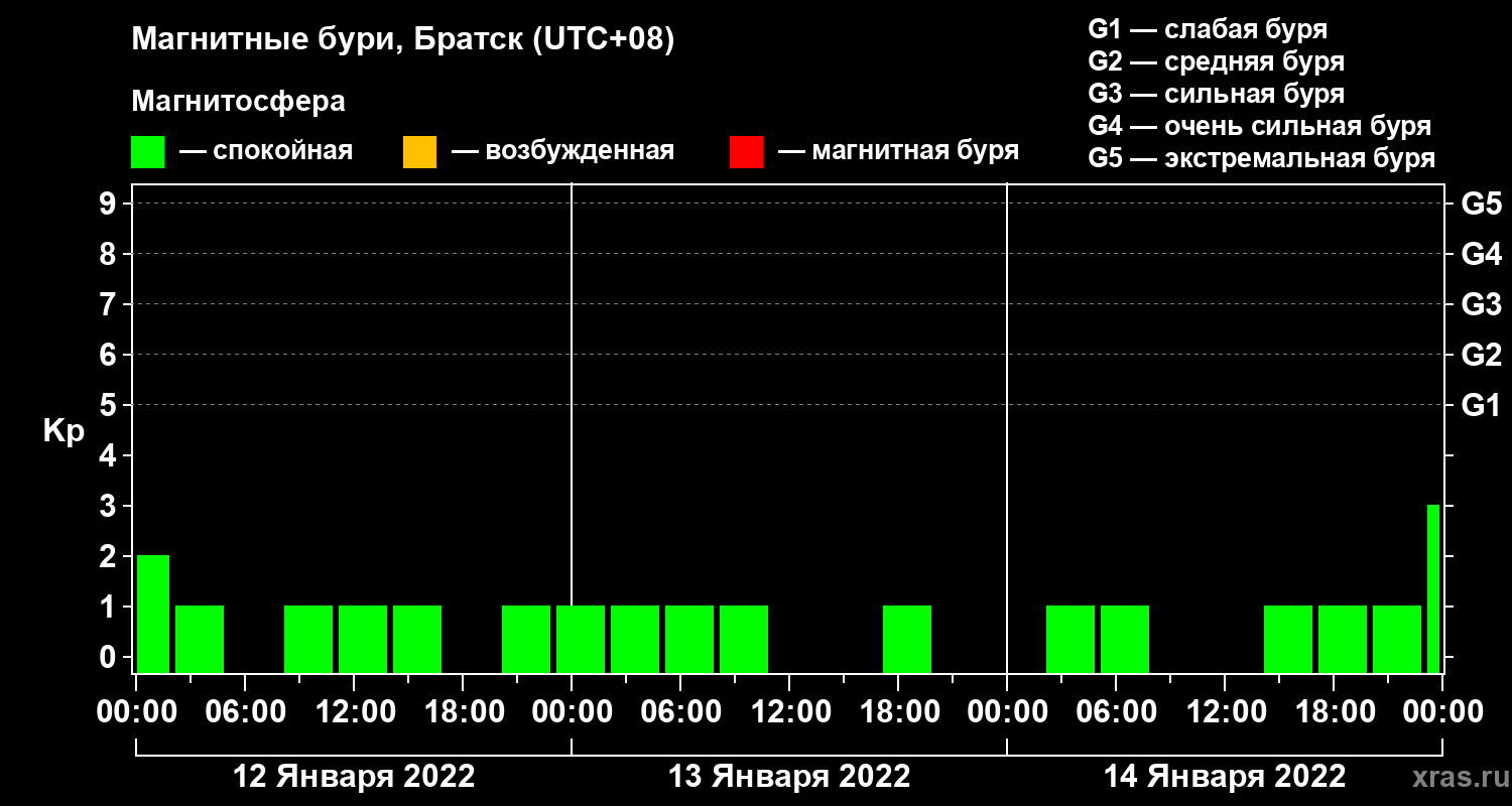 Изменения геомагнитного индекса Kp с 12 по 14 января 2022 года для средних широт