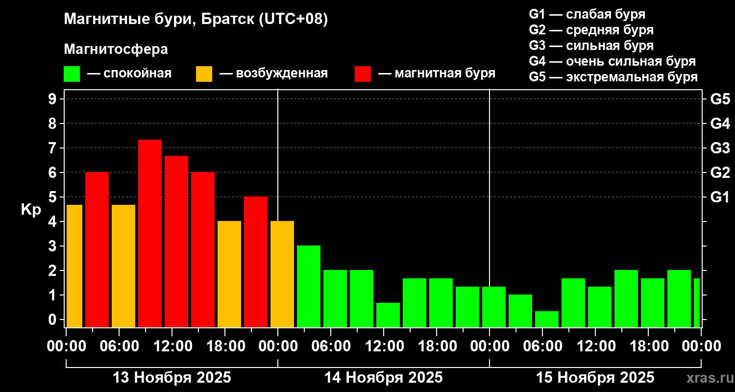 Магнитные бури в Братске — 15 ноября 2025 года