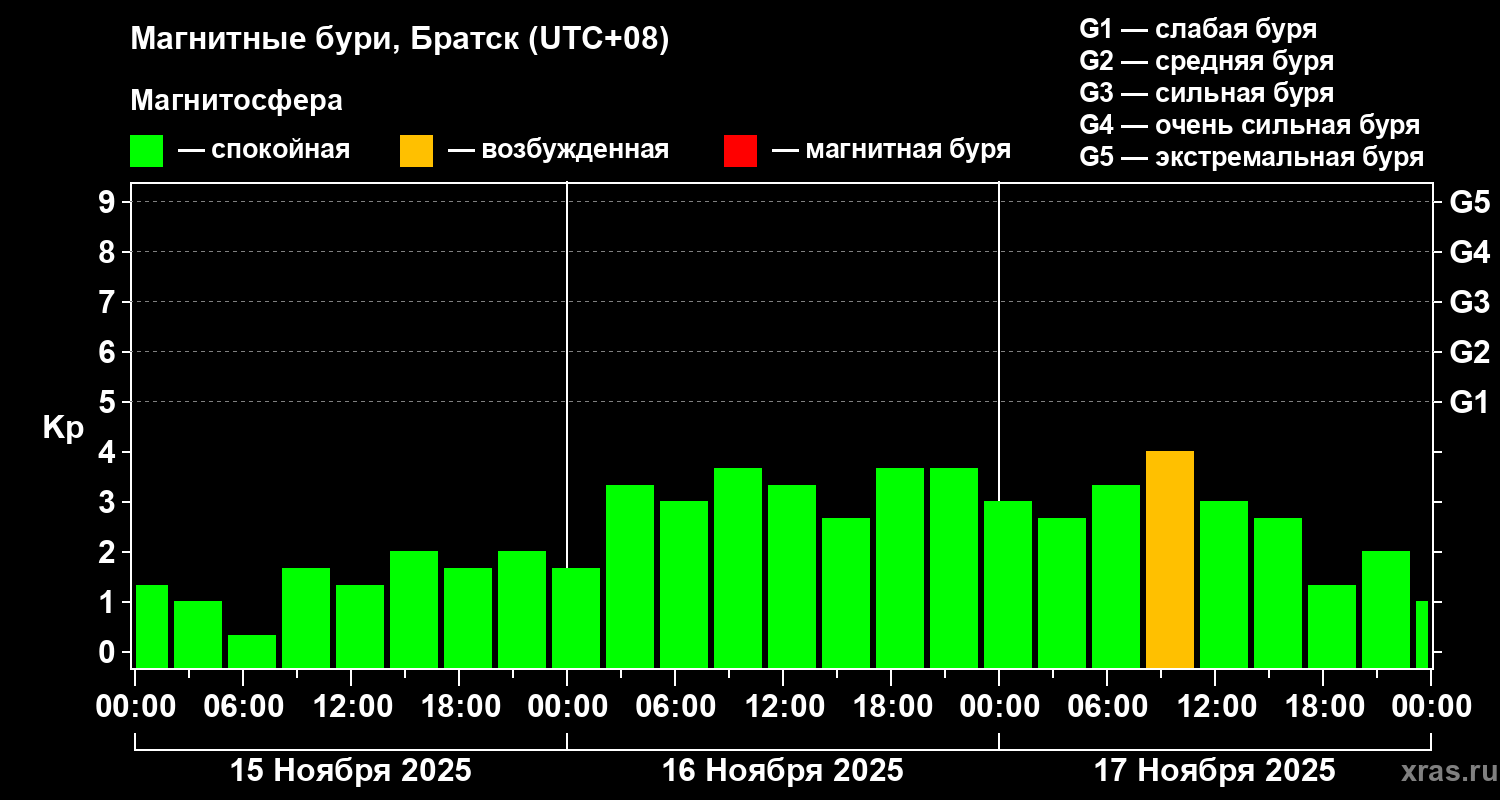 Магнитные бури в Братске — 17 ноября 2025 года