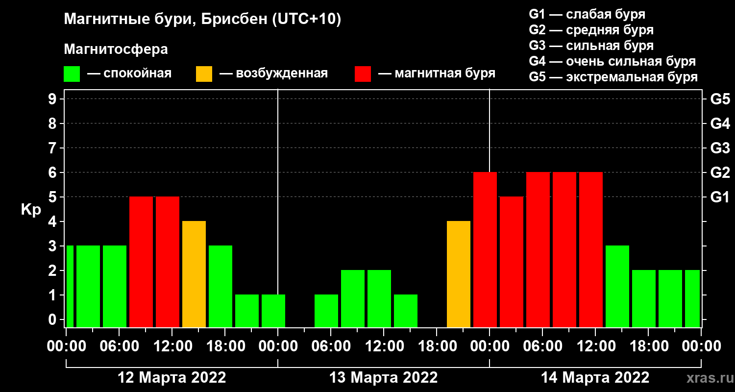 Магнитные бури в Брисбене — 14 марта 2022 года
