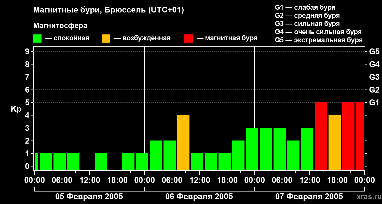 Магнитные бури в Брюсселе в феврале 2005 года