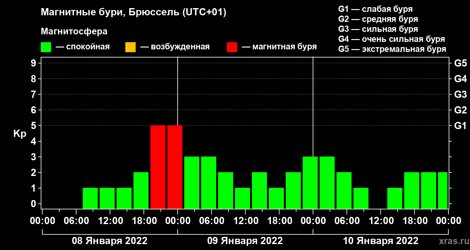 Магнитные бури в Брюсселе 10 января 2022 года