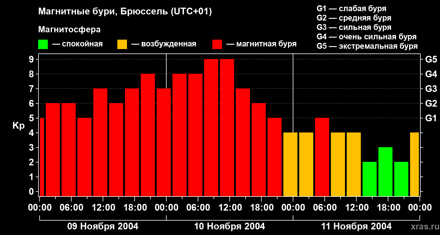 Магнитные бури в Брюсселе в ноябре 2004 года