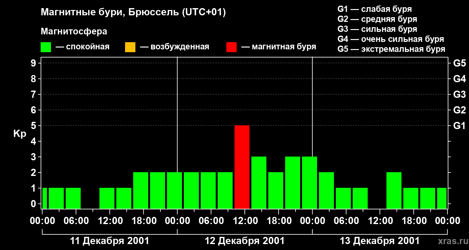 Магнитные бури в Брюсселе 13 декабря 2001 года