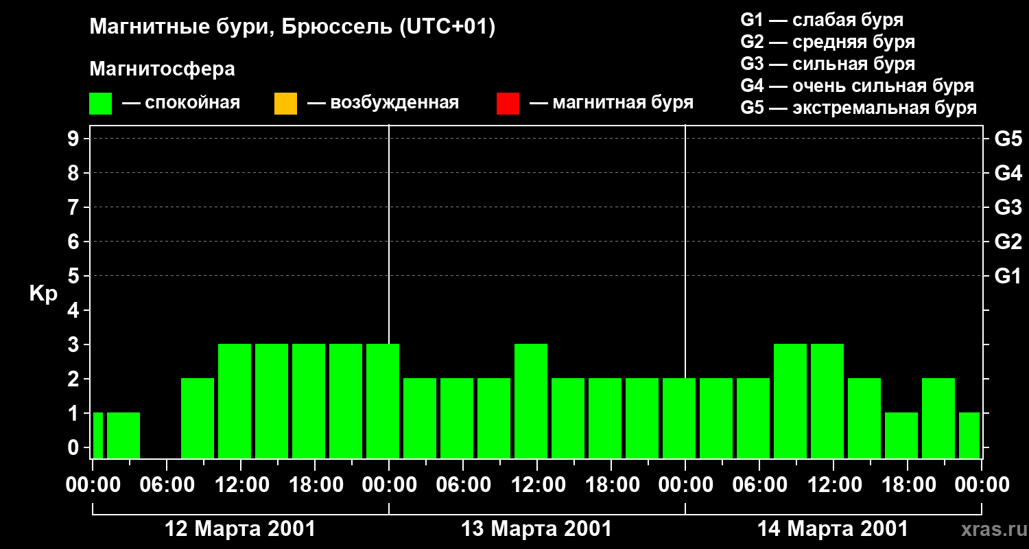 Магнитные бури в Брюсселе 14 марта 2001 года