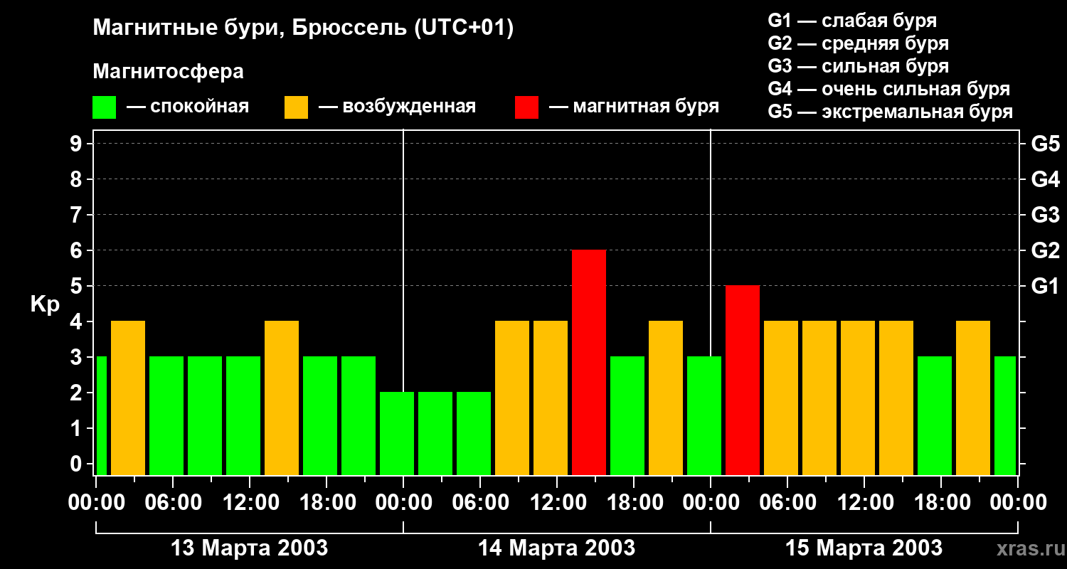 Магнитные бури в Брюсселе 15 марта 2003 года