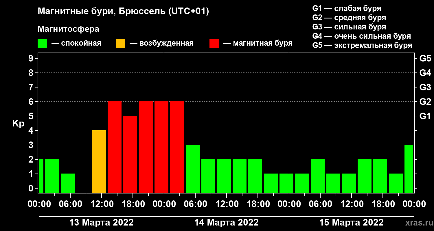 Магнитные бури в Брюсселе 15 марта 2022 года