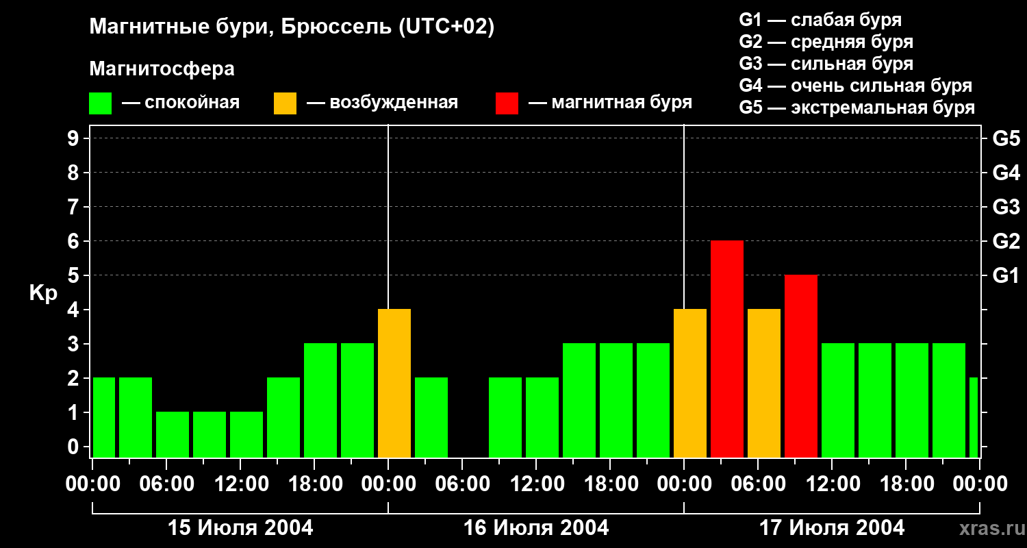 Магнитные бури в Брюсселе 17 июля 2004 года