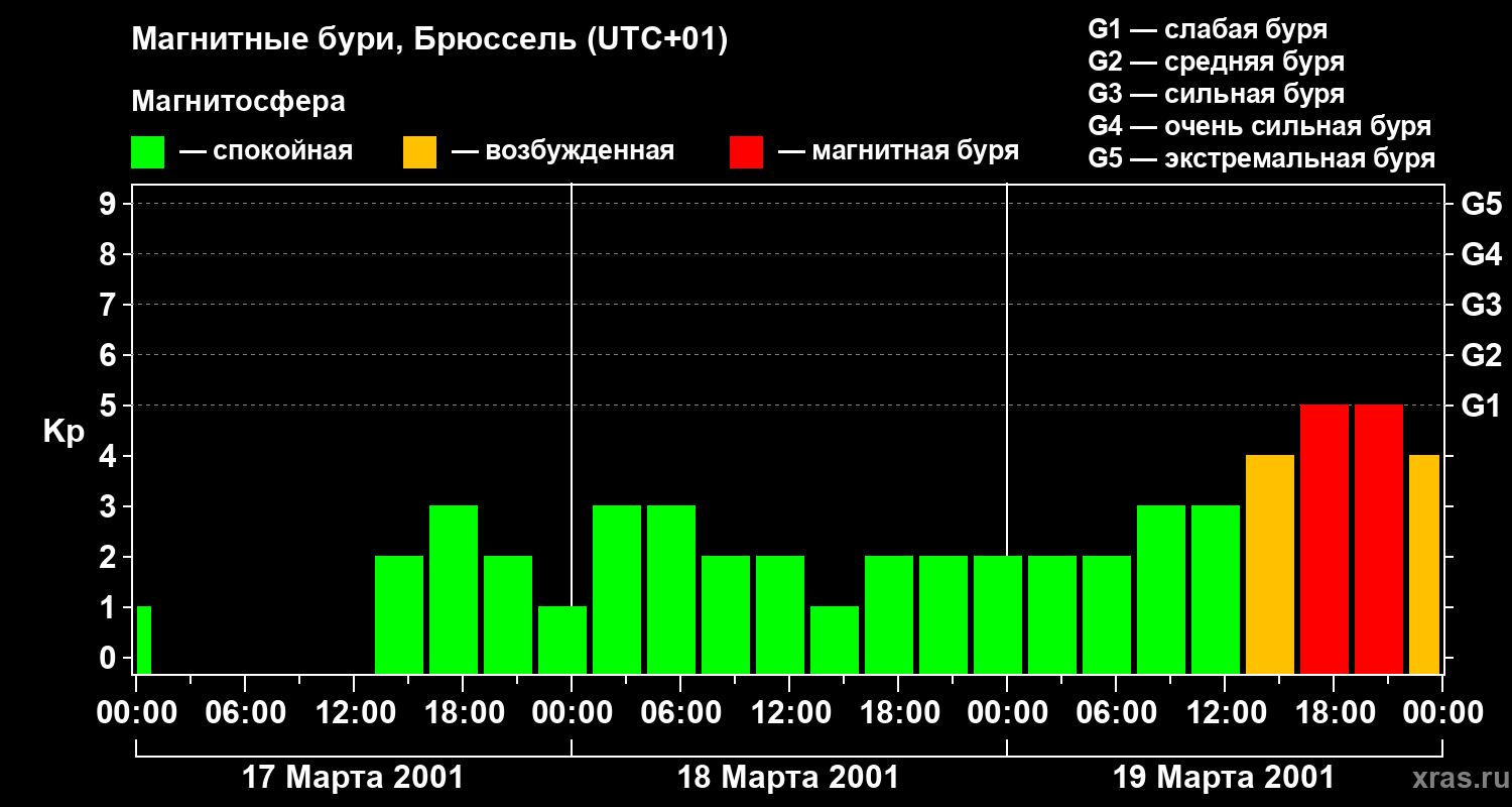 Магнитные бури в Брюсселе 19 марта 2001 года