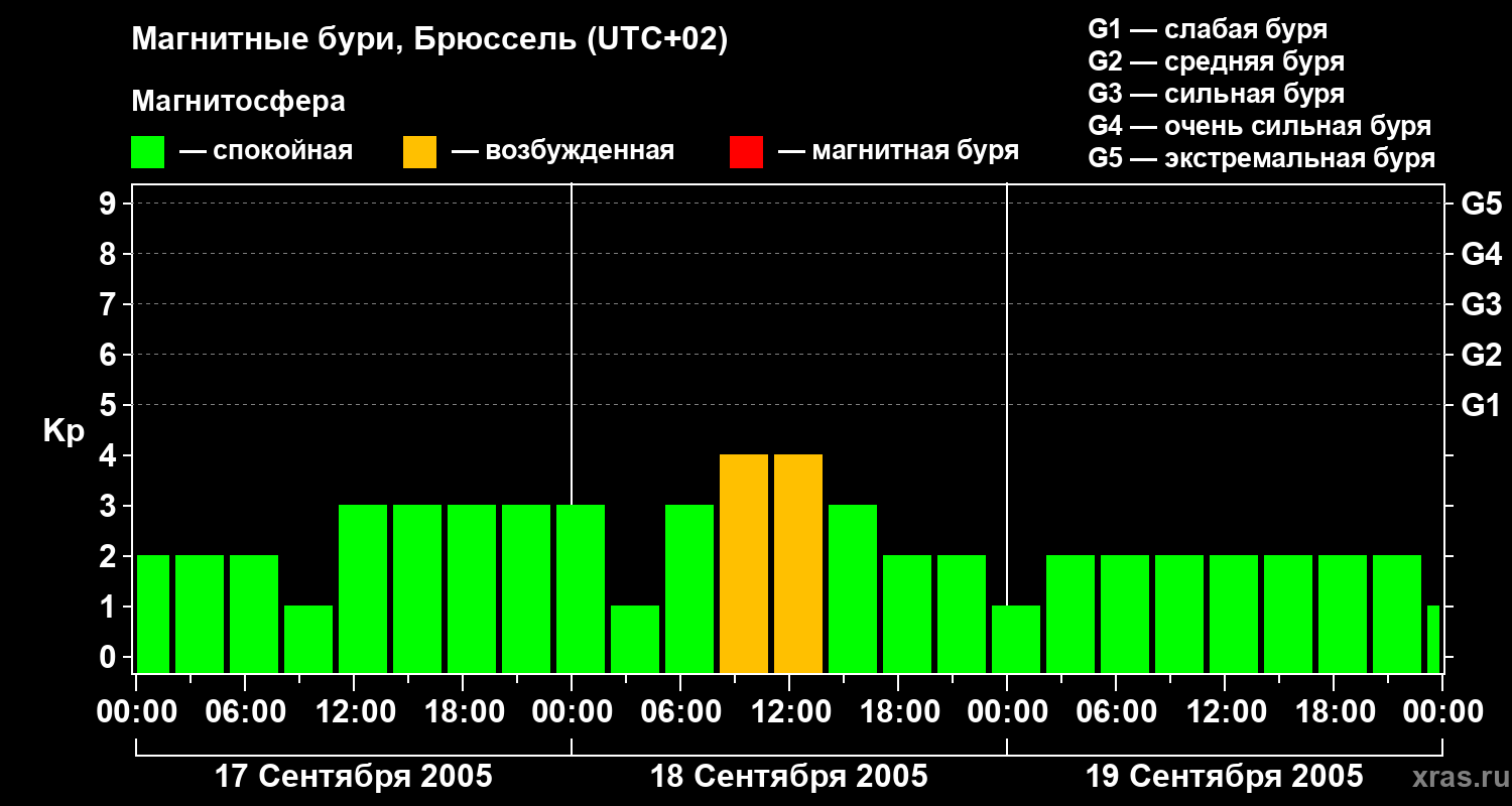 Магнитные бури в Брюсселе 19 сентября 2005 года