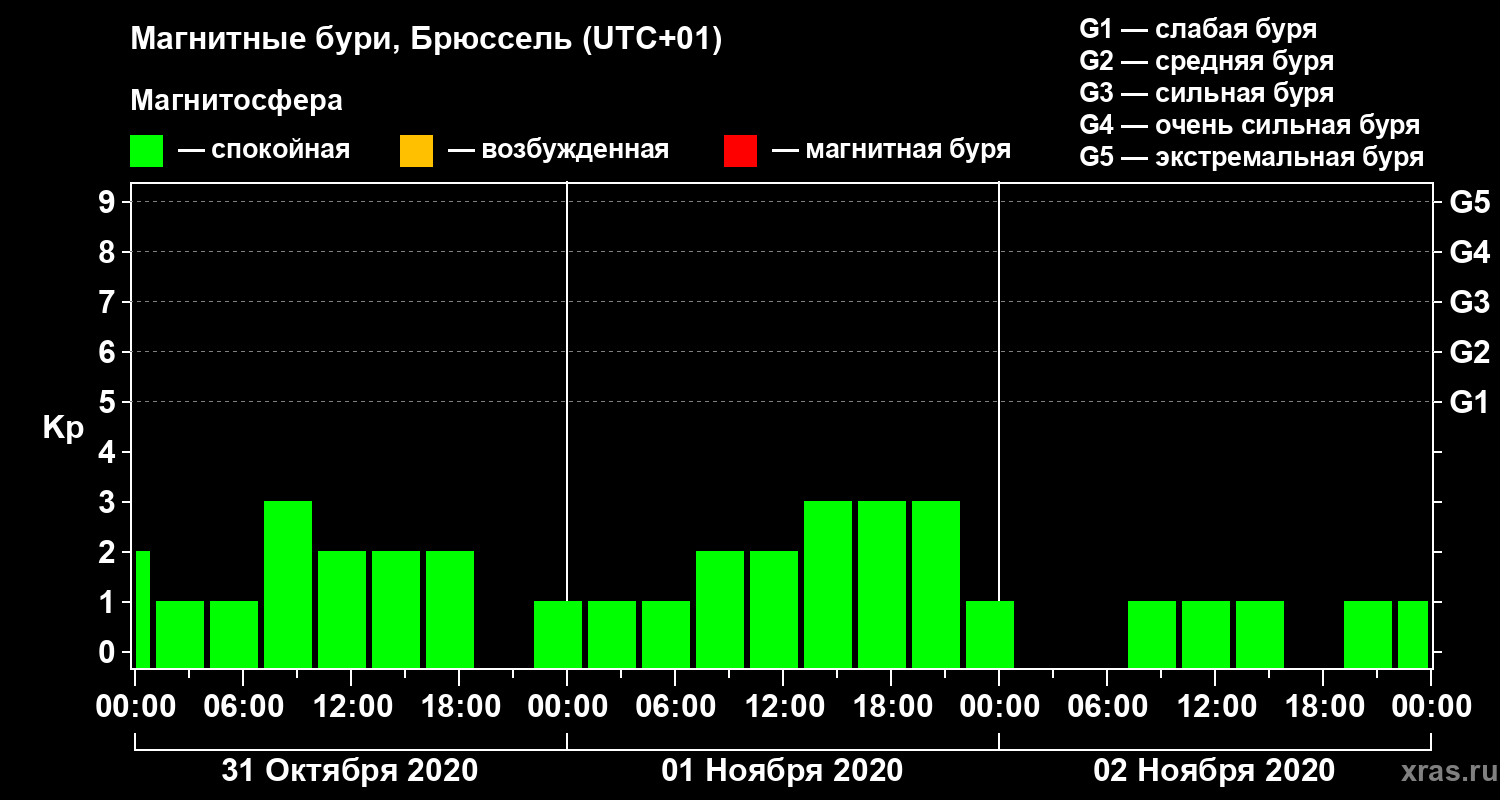 Магнитные бури в Брюсселе 2 ноября 2020 года