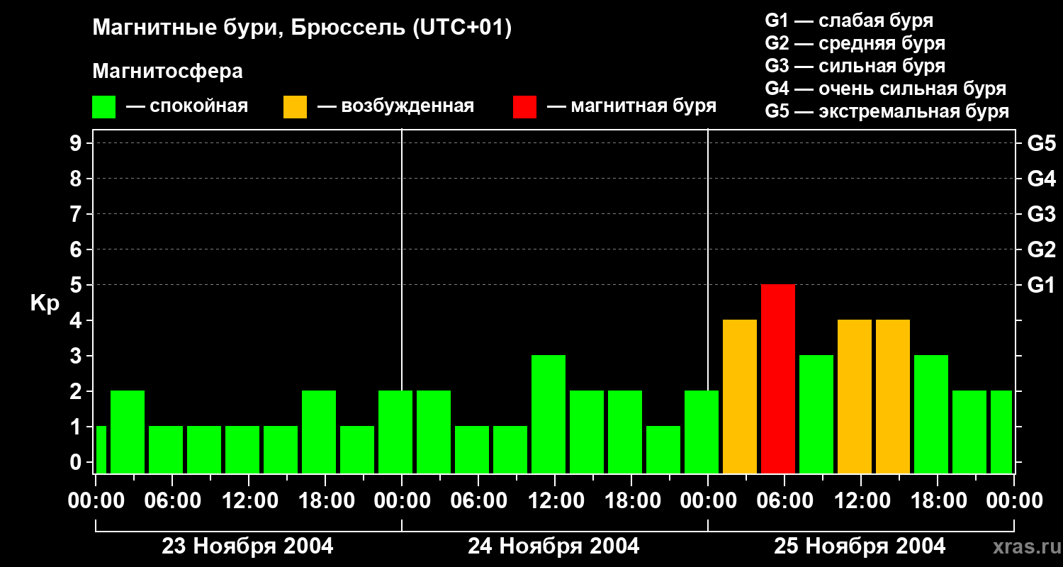 Магнитные бури в Брюсселе 25 ноября 2004 года