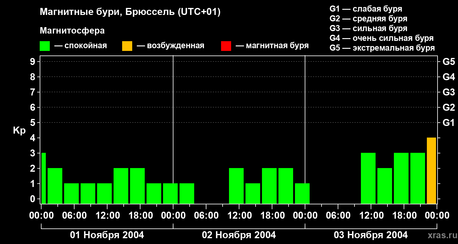Магнитные бури в Брюсселе 3 ноября 2004 года