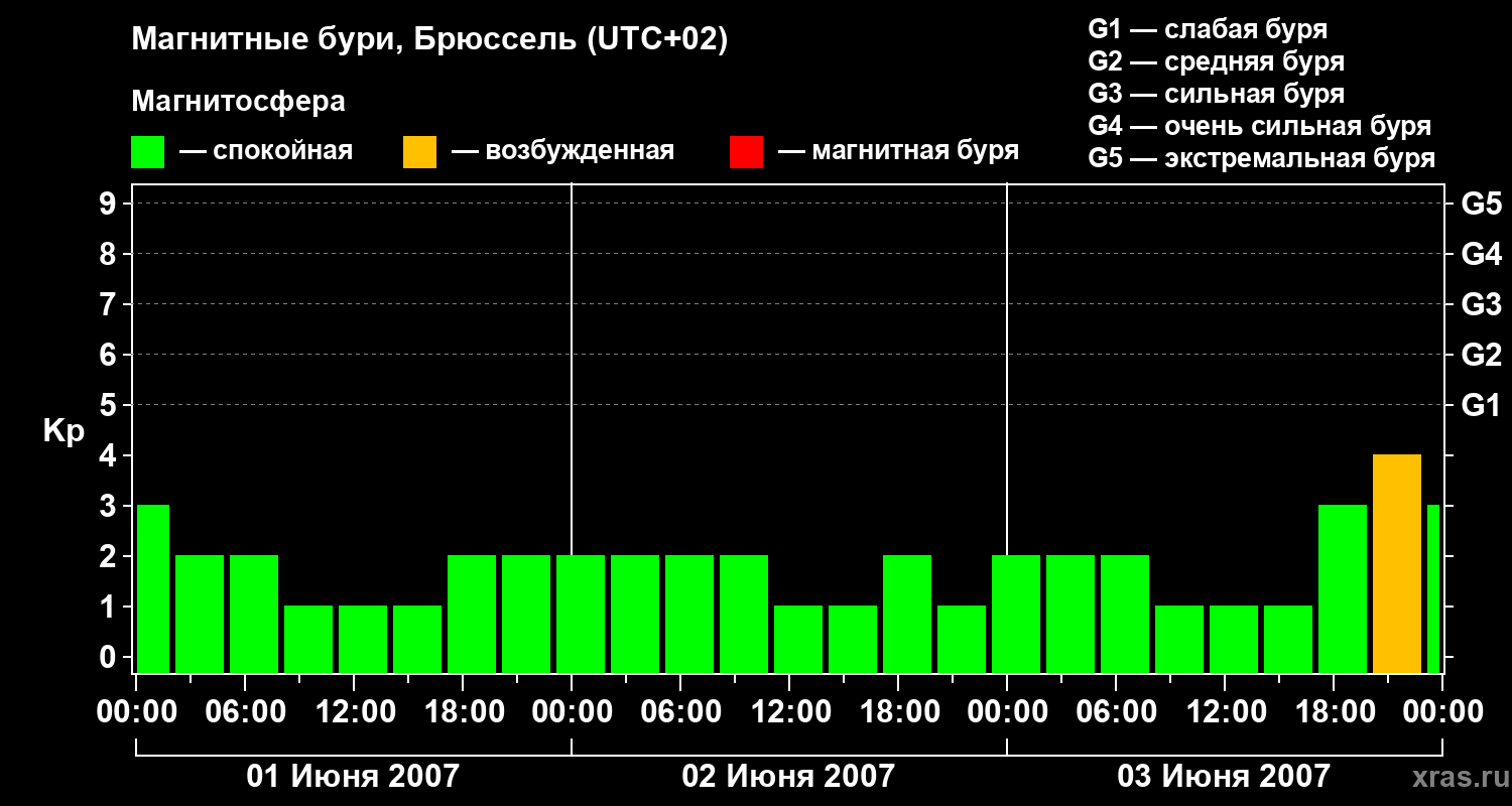 Магнитные бури в Брюсселе 3 июня 2007 года