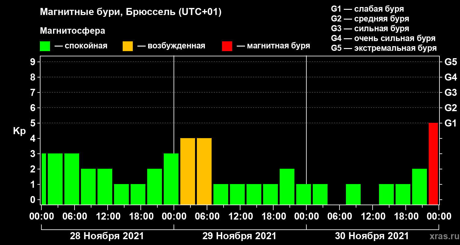 Магнитные бури в Брюсселе 30 ноября 2021 года