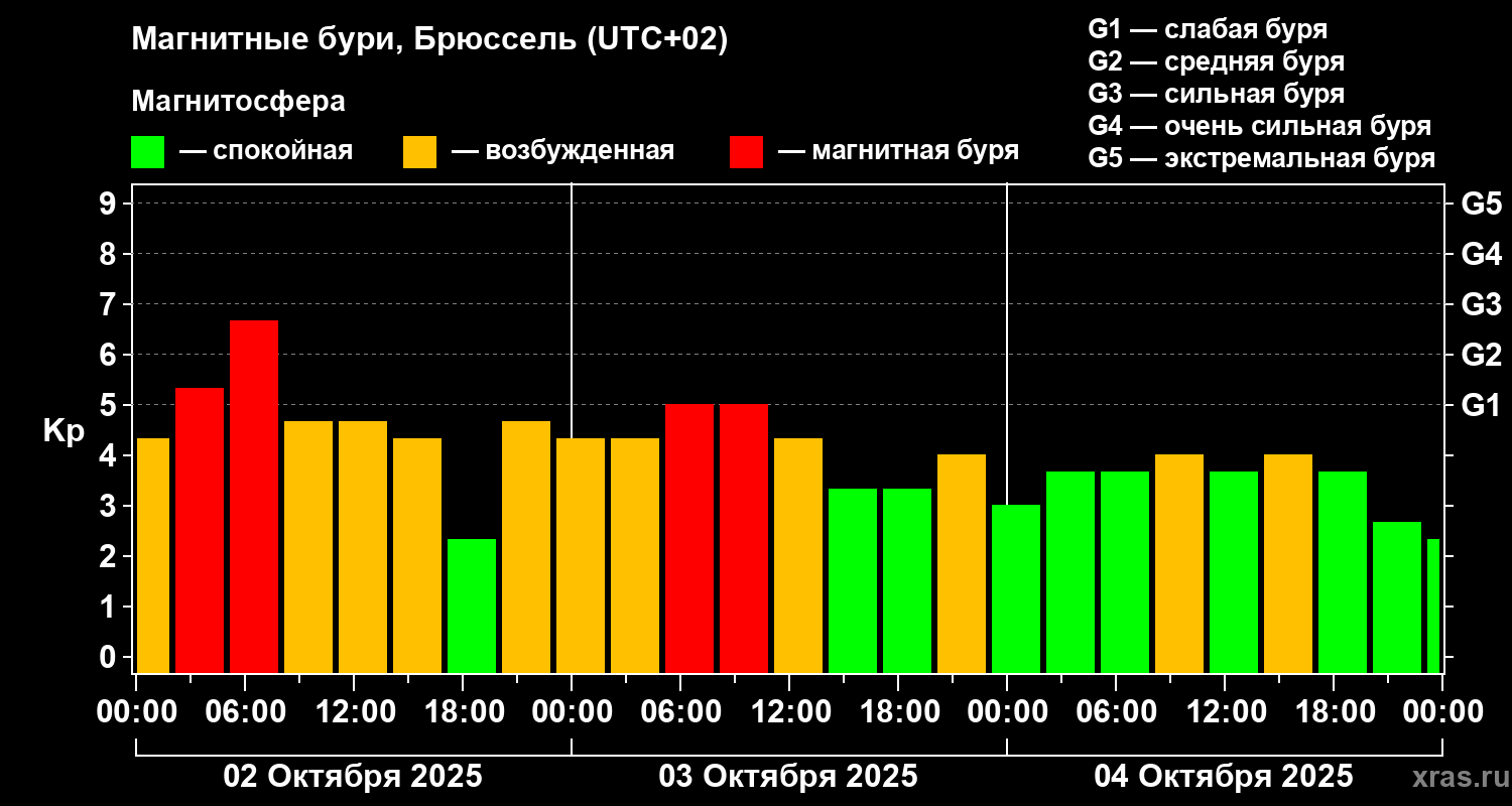 Магнитные бури в Брюсселе 4 октября 2025 года