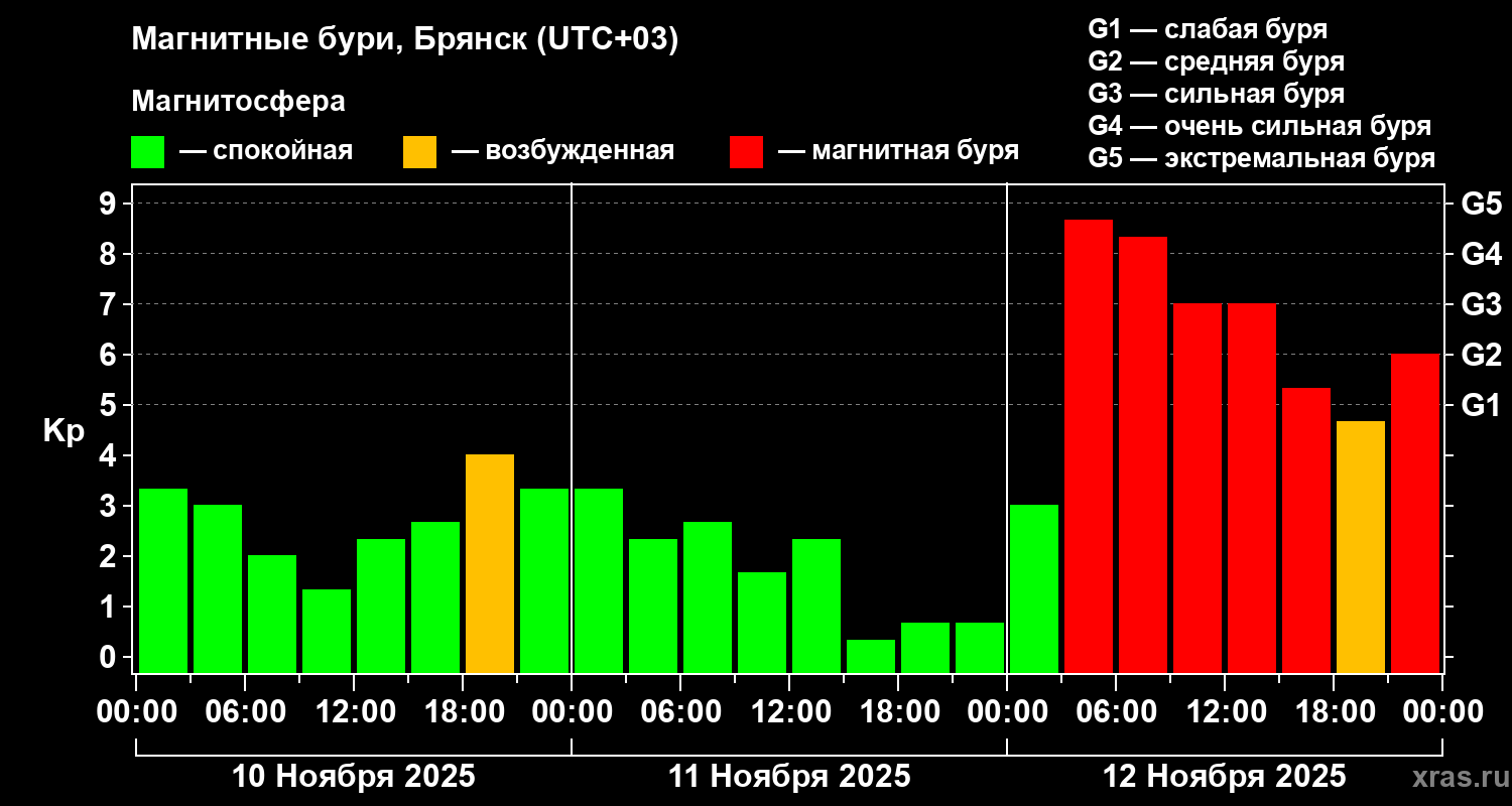Магнитные бури в Брянске — 12 ноября 2025 года