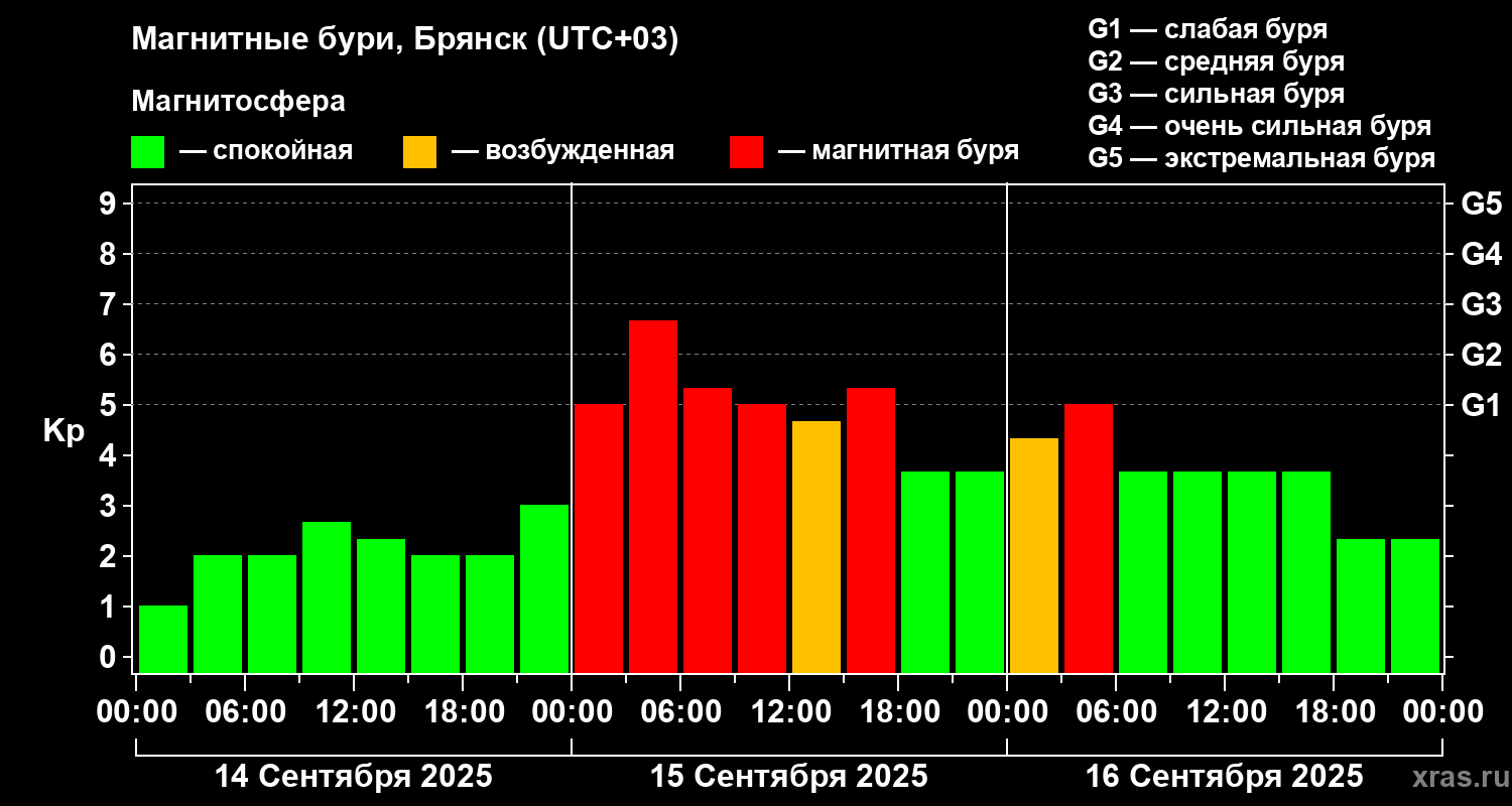 Магнитные бури в Брянске — 16 сентября 2025 года