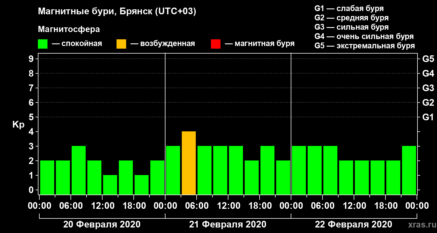 Магнитные бури в Брянске — 22 февраля 2020 года