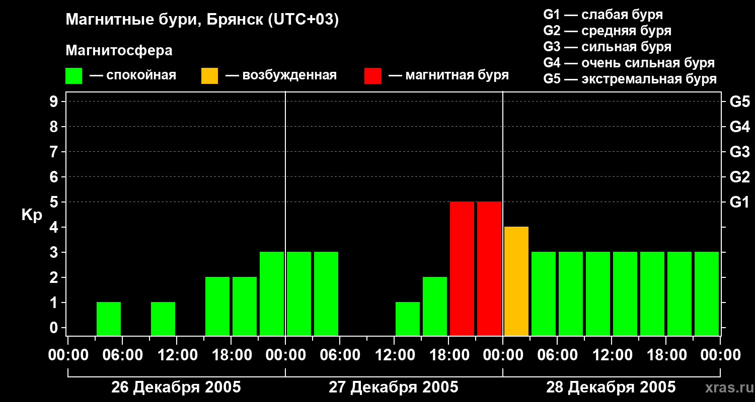 Магнитные бури в Брянске — 28 декабря 2005 года