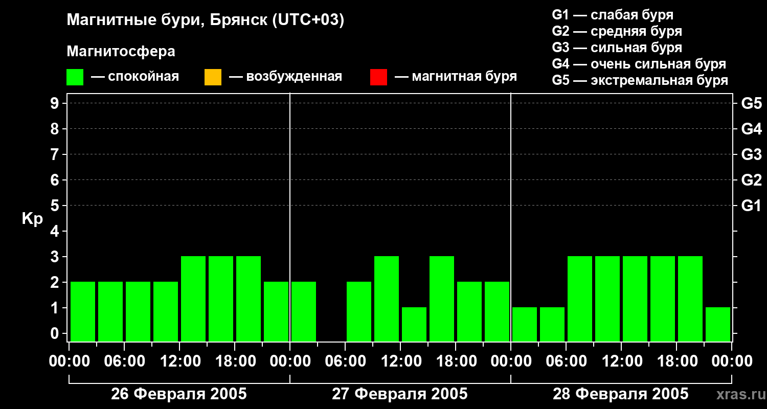 Магнитные бури в Брянске — 28 февраля 2005 года