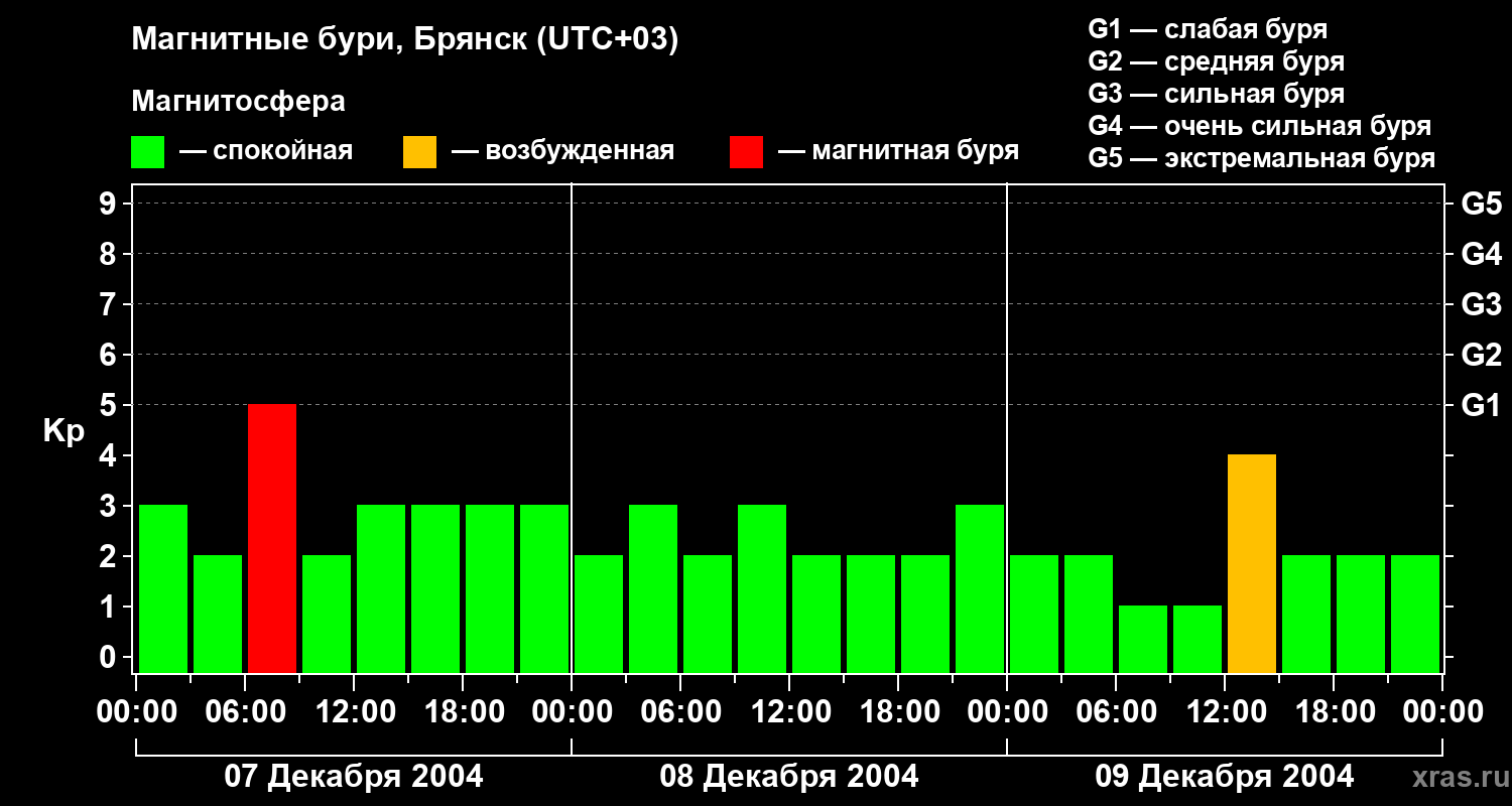 Магнитные бури в Брянске — 9 декабря 2004 года