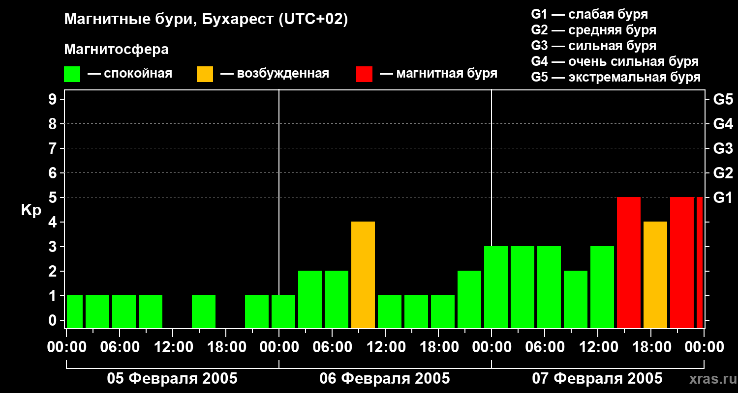 Магнитные бури в Бухаресте — 7 февраля 2005 года