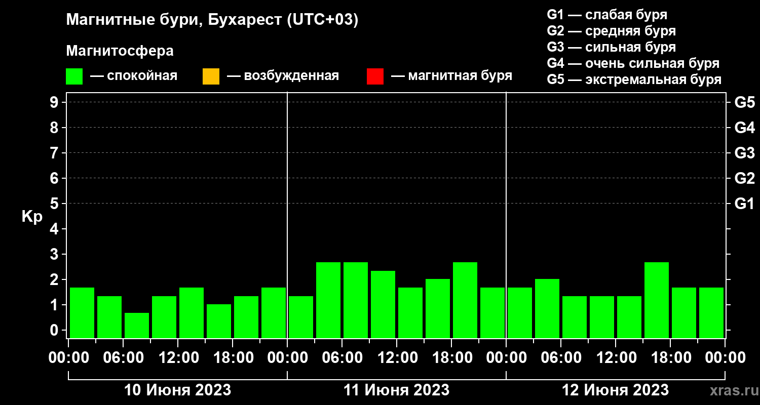 Магнитные бури в Бухаресте — 12 июня 2023 года