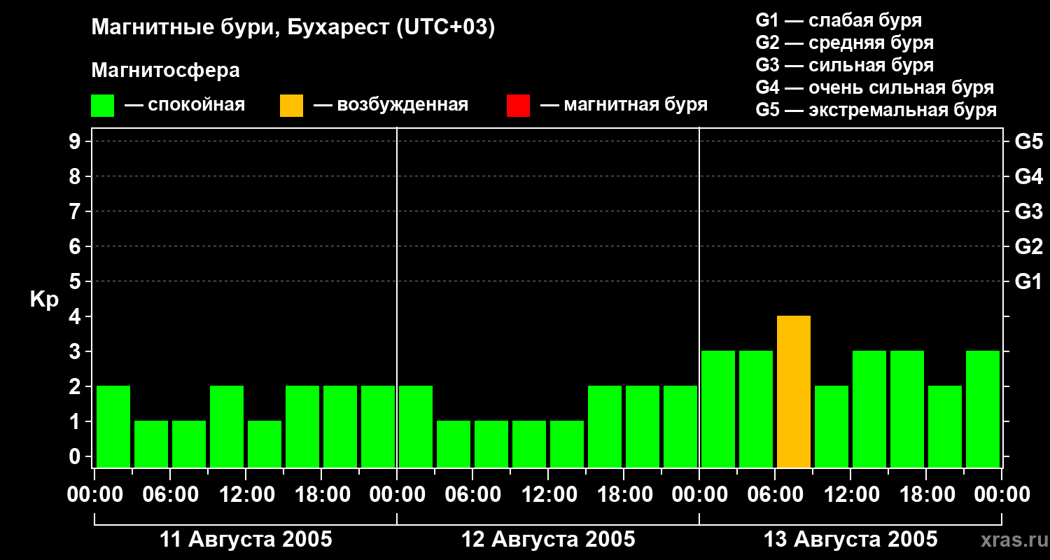 Магнитные бури в Бухаресте — 13 августа 2005 года